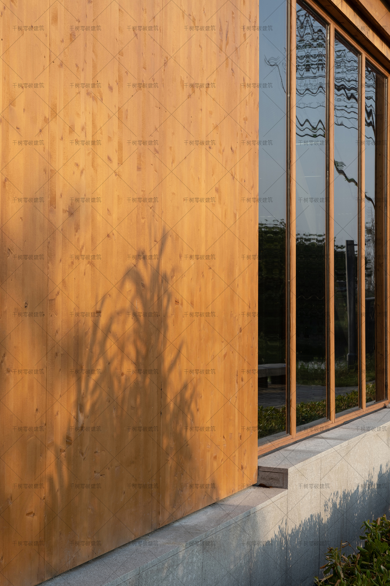 報告廳木屋和展示中心木屋墻面采用隔氣膜+內(nèi)外雙層保溫(內(nèi)保溫184mm厚,外保溫70mm厚)+CLT正交膠合木飾面板,屋面采用隔氣膜+保溫(屋面保溫235mm厚)+光伏瓦的圍護(hù)結(jié)構(gòu),門窗采用被動式節(jié)能阻燃木門窗(內(nèi)置遮陽百葉),加上高能效的技術(shù)設(shè)備:地源熱泵系統(tǒng)、風(fēng)力發(fā)電系統(tǒng)、建筑光伏一體化系統(tǒng)、光儲直柔系統(tǒng)、熱回收系統(tǒng),通過可視化的智慧運(yùn)維管理平臺高效監(jiān)管、智慧運(yùn)算,綜合管控與整治,最終實現(xiàn)了零碳建筑的目標(biāo)。