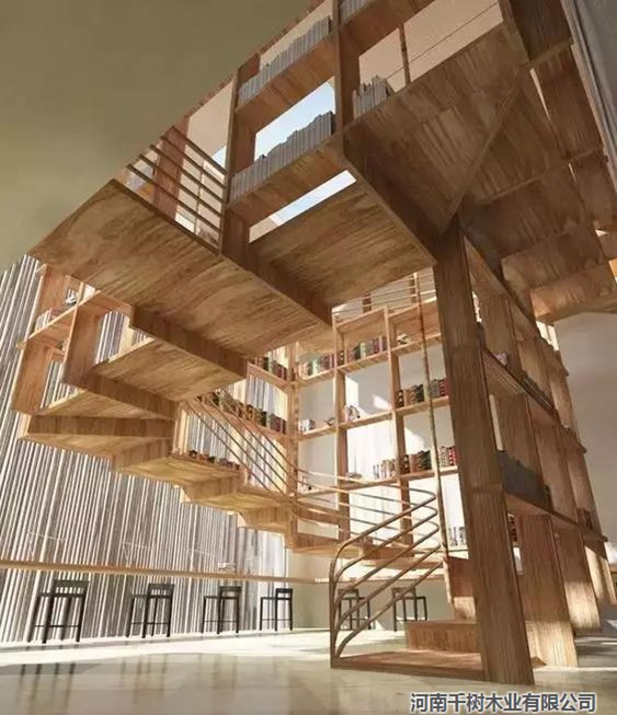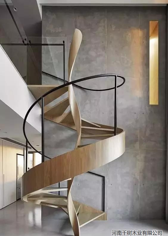 流線型的木構(gòu)樓梯,
