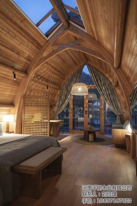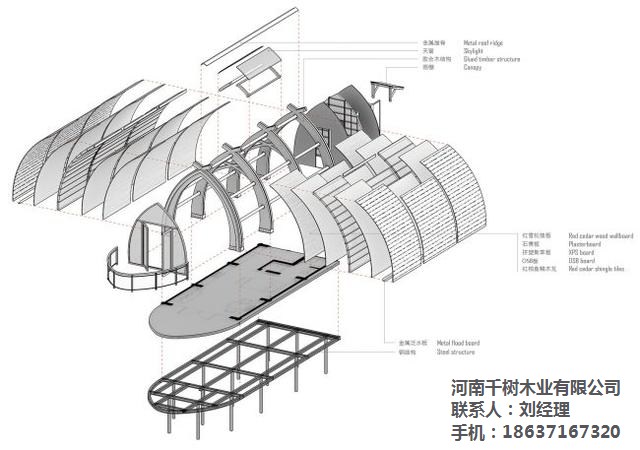 ▼建筑內(nèi)外清晰可見(jiàn)拱梁和圓木構(gòu)成的完整結(jié)構(gòu)體系
