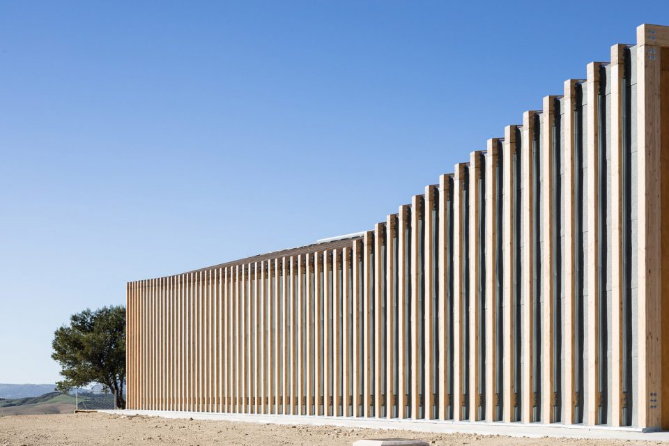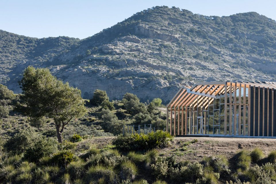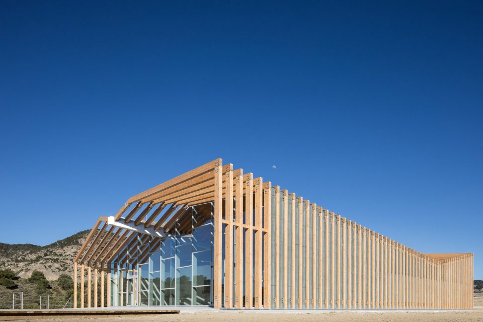平行布置的木質(zhì)外框架形成了該建筑的主要特征,頂部的扭曲打破了嚴(yán)謹(jǐn)又富有秩序性的建筑外觀,創(chuàng)造了視覺的沖擊。外立面木結(jié)構(gòu)的夾縫間由木板加以防水涂層覆蓋,而末端縫隙則采用石板覆蓋。這種設(shè)計(jì)方式暗喻了峽谷的形成和對(duì)古道的解讀。建筑依靠光電板實(shí)現(xiàn)全部能源自給自足,并依靠Canadian well實(shí)現(xiàn)室內(nèi)通風(fēng)。