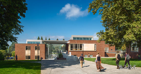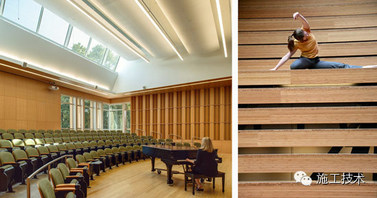 波特蘭里德學(xué)院表演藝術(shù)大樓建筑特色:里面有一個(gè)200座的劇院和靈活的座位配置,一個(gè)100座的非正式的黑盒劇場,100座的合唱排練廳和100座劇院性 能實(shí)驗(yàn)室。教學(xué)和排練空間包括:多媒體實(shí)驗(yàn)室和資源庫、兩大彩排舞蹈的劇院、服裝設(shè)計(jì)工作室,共享的教室和教師辦公室。