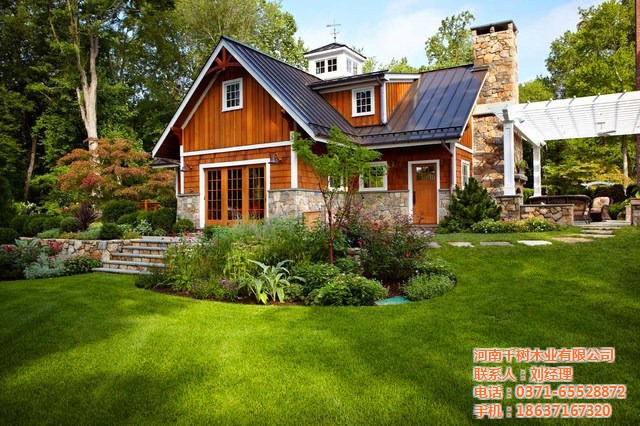 一般都會選擇歐美風格,兩到三層結構,面積在四百平左右,因為這樣的木屋足可以滿足中國人的需求,無論是度假或是居住,無論是一家?guī)卓诨蚴桥笥褋矸露家詽M足.在現(xiàn)在工業(yè)化的時代,太多的化學物品占據(jù)了大多數(shù)的生活用品中,住著原木的別墅房屋,回歸大自然的懷抱也是很多人的夢想.
