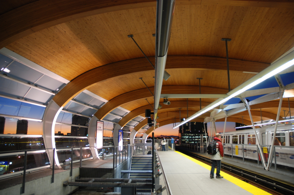 今天,NLT 被廣泛用于從辦公室和學(xué)校到商業(yè)和公共建筑的各種建筑類型, 常用于樓面和屋面,通常暴露在外是為了展示其天然的木飾面,也可用作樓梯和電梯井的墻面,以及曲面的屋頂結(jié)構(gòu),就像本拿比市的布倫特伍德中轉(zhuǎn)站一樣“一艘?guī)е鳱LT篷布的獨(dú)木舟”。