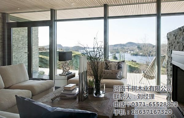 河南木別墅的尺寸和視野,是我們喜歡的一個焦點(diǎn)。特別對于度假木屋,在室內(nèi)平靜的與戶外自然景觀對話,是大窗戶的重要意義。大窗戶在木屋中,提供最佳漂亮的風(fēng)格,當(dāng)然對于木屋設(shè)計(jì)也是至關(guān)重要,如何漂亮美觀還要節(jié)能。如:窗戶與墻壁空間的比例、窗戶的形狀和尺寸及屋頂?shù)呐渲枚际窃O(shè)計(jì)的考慮因素,方向葉是很重要的,可能會建議包括深檐和傾斜的窗戶方向以便在減輕陽光。