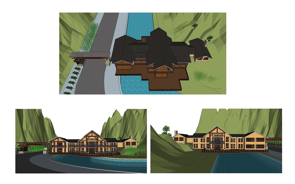 接待中心位于該景區(qū)大門口,總建筑面積1170㎡,分為上下兩層,建筑部分坐落在河面跨度21米的山間河道上方,設(shè)計(jì)師克服了跨河橋面的撓度問題使得項(xiàng)目施工最終順利完成。本接待中心木屋的主體結(jié)構(gòu)采用的是美國花旗松膠合木,實(shí)現(xiàn)了大跨度的結(jié)構(gòu)形式,墻體結(jié)構(gòu)采用了標(biāo)準(zhǔn)的2*4工法施工,外墻掛板采用了紅雪松無節(jié)材。室內(nèi)設(shè)計(jì)有中央空調(diào),煙霧報(bào)警及噴淋系統(tǒng)。功能布局有接待廳,辦公室、母嬰室、民俗展示區(qū)、公共衛(wèi)生間及會(huì)議室。通過先期的設(shè)計(jì),在保證項(xiàng)目的功能性及節(jié)能效率上發(fā)揮最大作用,地面使用率達(dá)到最高且建造速度快,安裝時(shí)不受氣候條件影響,同時(shí)最大限度的減少現(xiàn)場施工量,縮短施工周期,項(xiàng)目完成用時(shí)90個(gè)工作日,該項(xiàng)目自2017年4月交付使用以后受到甲方及游客的一致好評(píng)。
