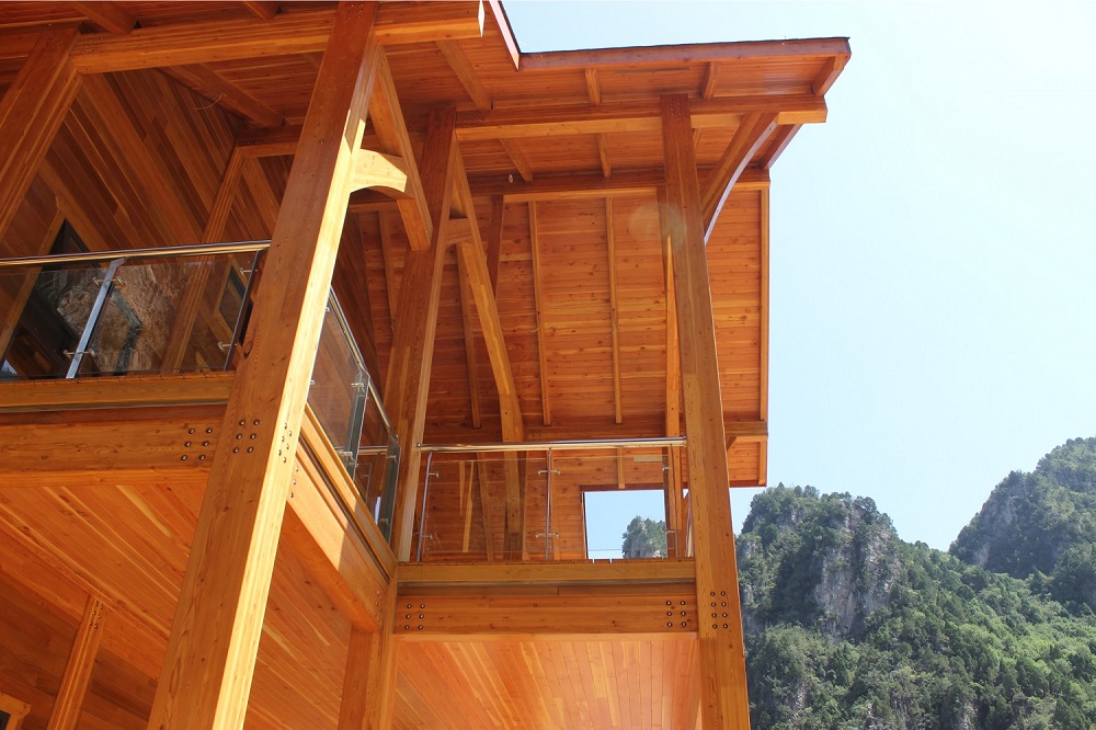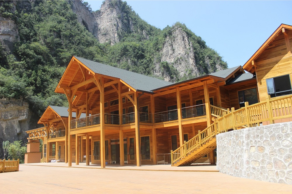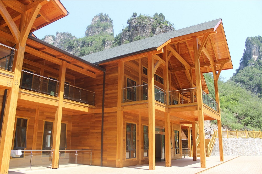 河南焦作龍翔山旅游度假區(qū)接待中心項(xiàng)目是目前河南省最大的單體花旗松膠合木項(xiàng)目,最大跨度達(dá)到10m以上,為河南木結(jié)構(gòu)行業(yè)的發(fā)展起到了帶動(dòng)作用。