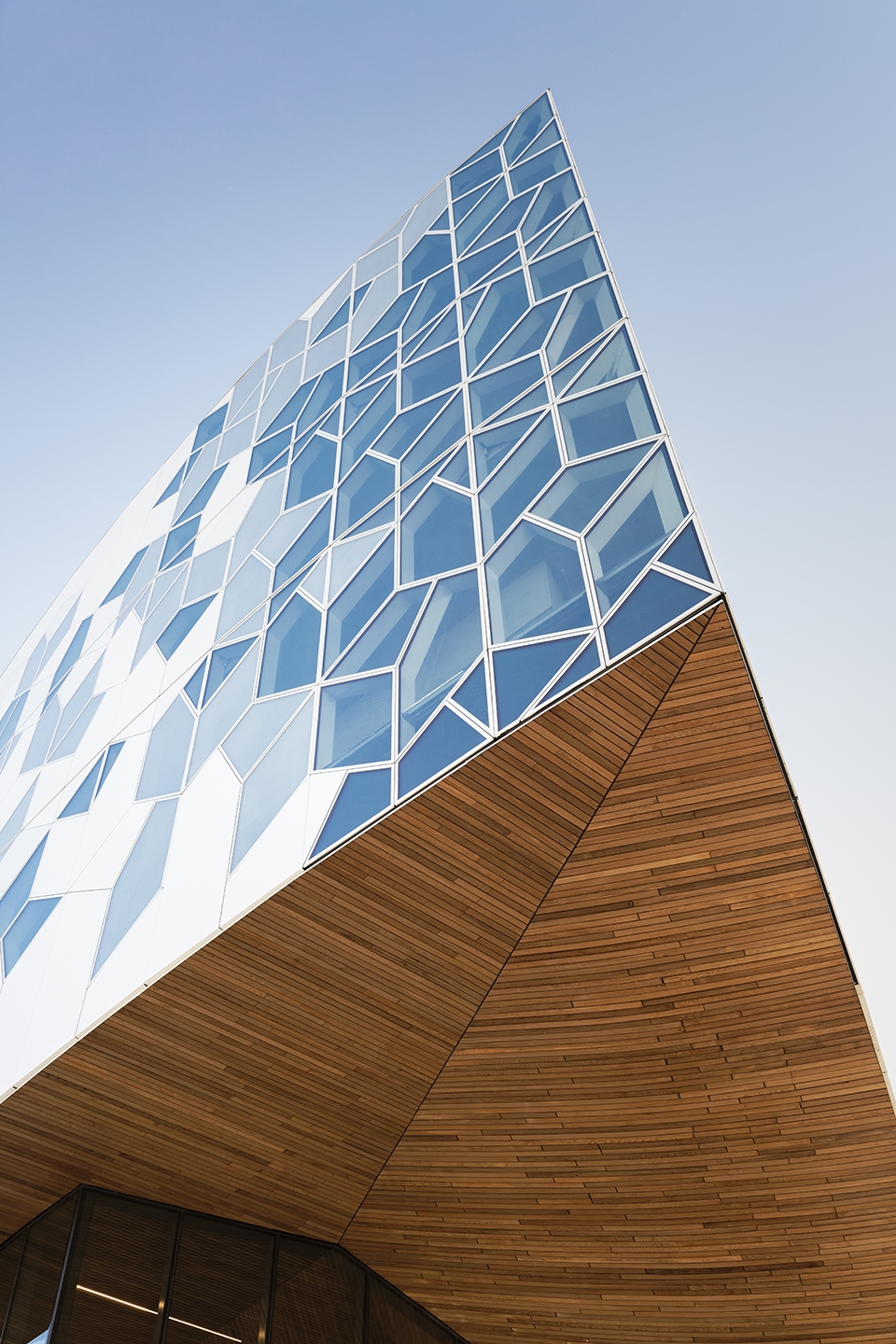 ▼獨特的六邊形幾何立面平衡了透明和不透明窗板的分布,能夠對室內所需的日光水平起到控制作用